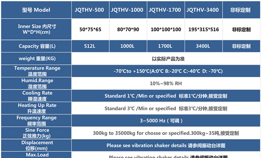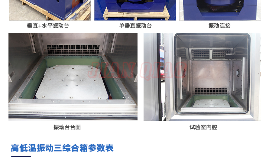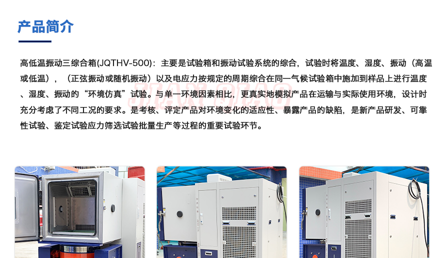 產品型號:JQTHV-500 品牌:劍 喬 用途:高低溫振動三綜合箱(JQTHV-500):主要是試驗箱和振動試驗系統的綜合,試驗時將溫度、濕度、振動(高溫或低溫),(正弦振動或隨機振動)多種試驗綜合!